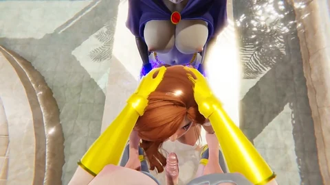 Azione Manga POV 3D Con Futa Starfire Che Viene Penetrata Da Dietro E Riceve Un Pompino Da Raven E Batgirl